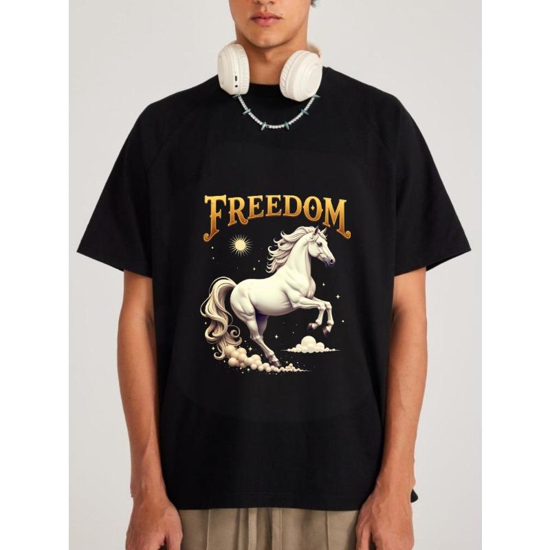 Белая футболка с принтом лошади свободы для повседневной носки — купить товар онлайн с бесплатной доставкой по всему миру!