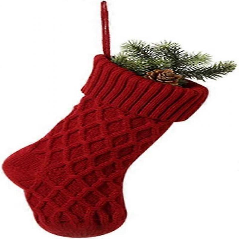 Knit Christmas Stocking, 1PCS 15inch Xmas Socks Fireplace Hanging Decoration, Rustic Candy Gift Bag for Family Holiday — купить товар онлайн с бесплатной доставкой по всему миру!