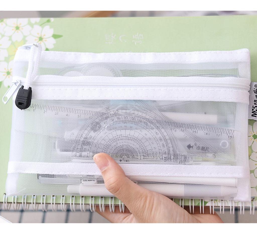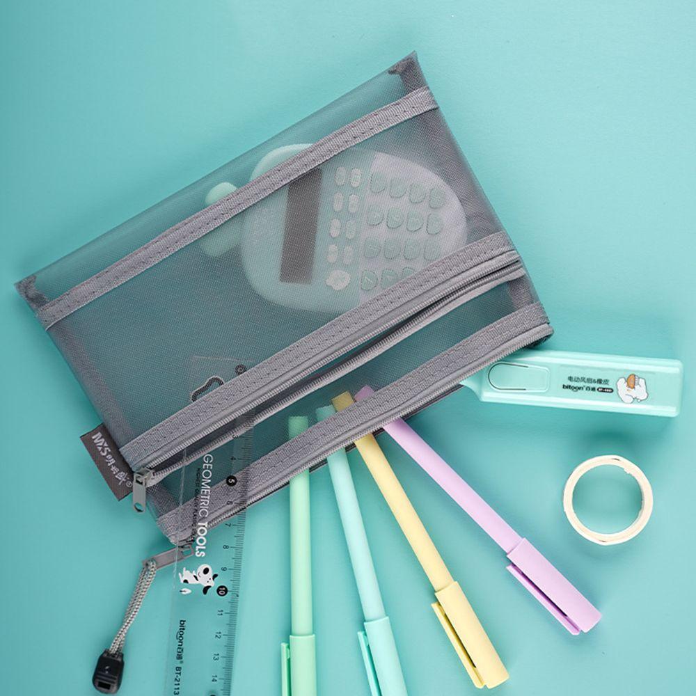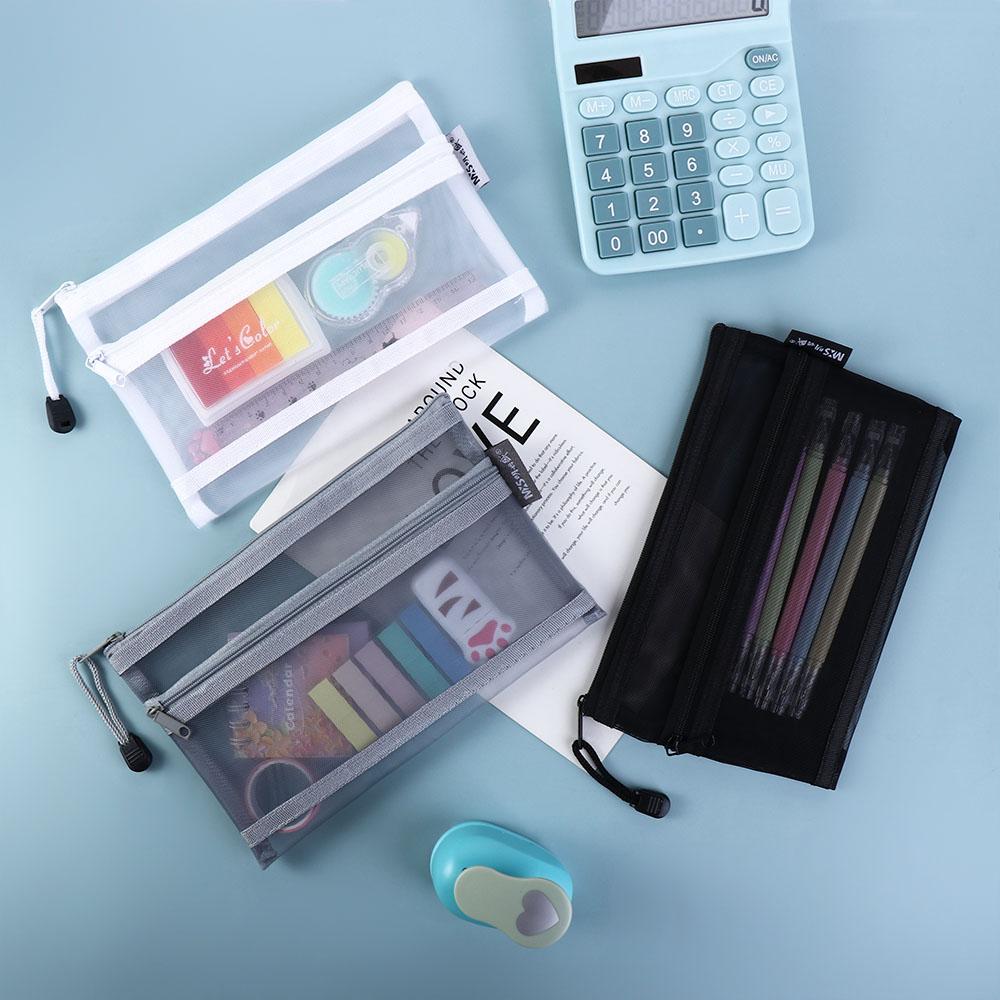 Document Pen Box Cosmetic Storage Bag School Stationery Supplies File Folder Double Mesh Pencil Bag