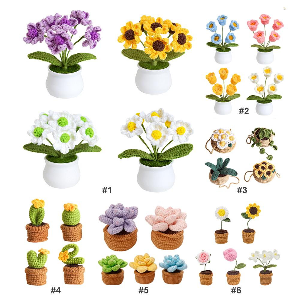 4 шт. Набор для начинающих для вязания крючком комнатных растений своими руками, набор для вязания крючком с пошаговыми видеоуроками для начинающих взрослых