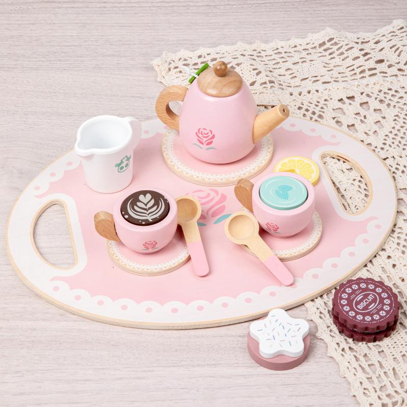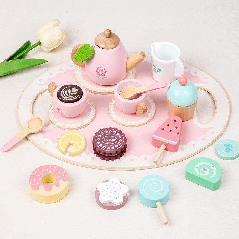 Деревянный игровой домик для послеобеденного чая, игра с мороженым, детский имитированный чайник, чайный сервиз, интерактивная кухня, развивающие игрушки