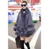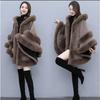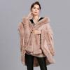 Женское пальто Осень и Зима Новое Большого размера Искусственный меховой воротник Шаль Меховой капюшон Вязаный кардиган Шаль Накидка Куртка