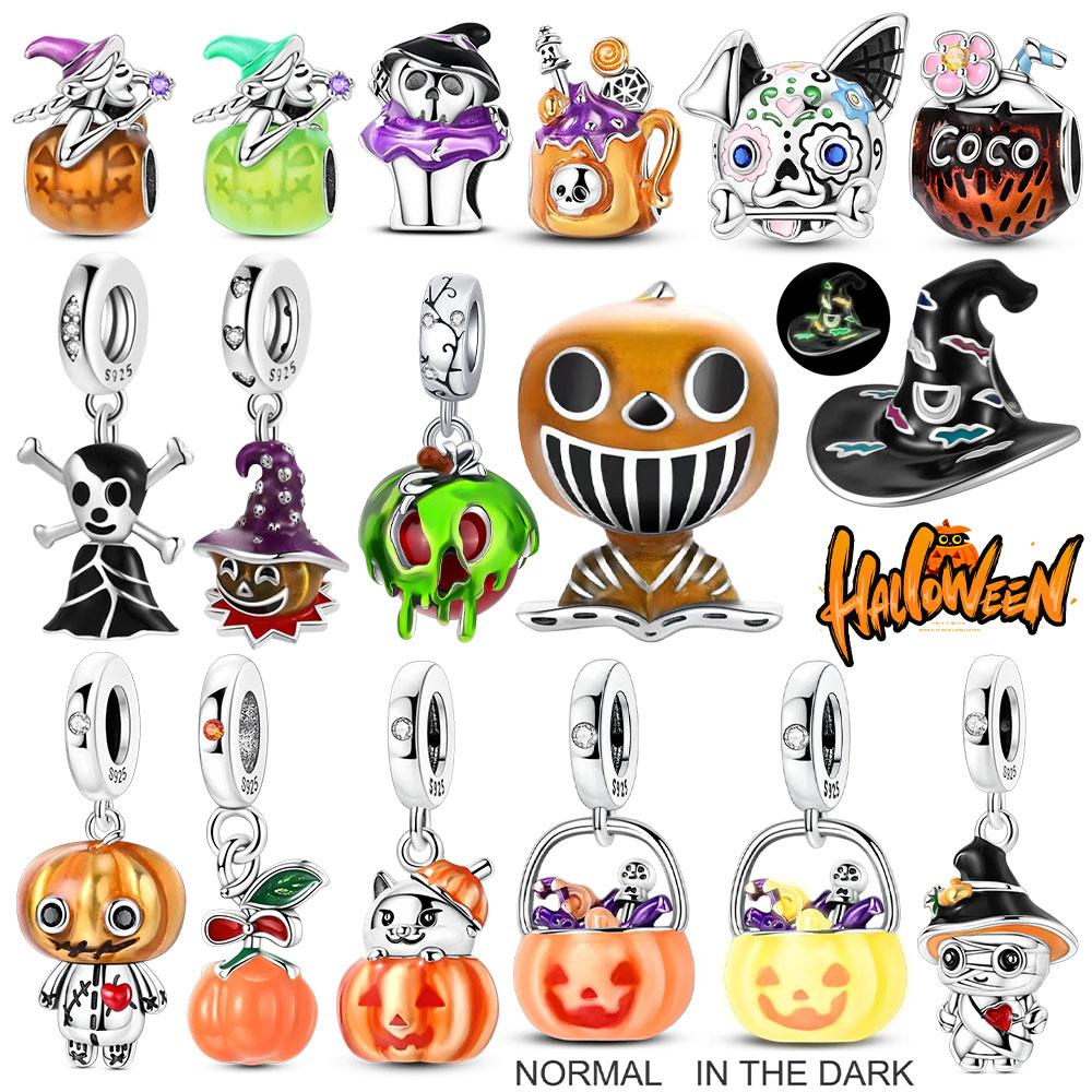 Original Charms Bead Copper Halloween Noctilucent Pumpkin Skull Candy Pendants Fit Diy Bracelet For Women Jewelry Gift