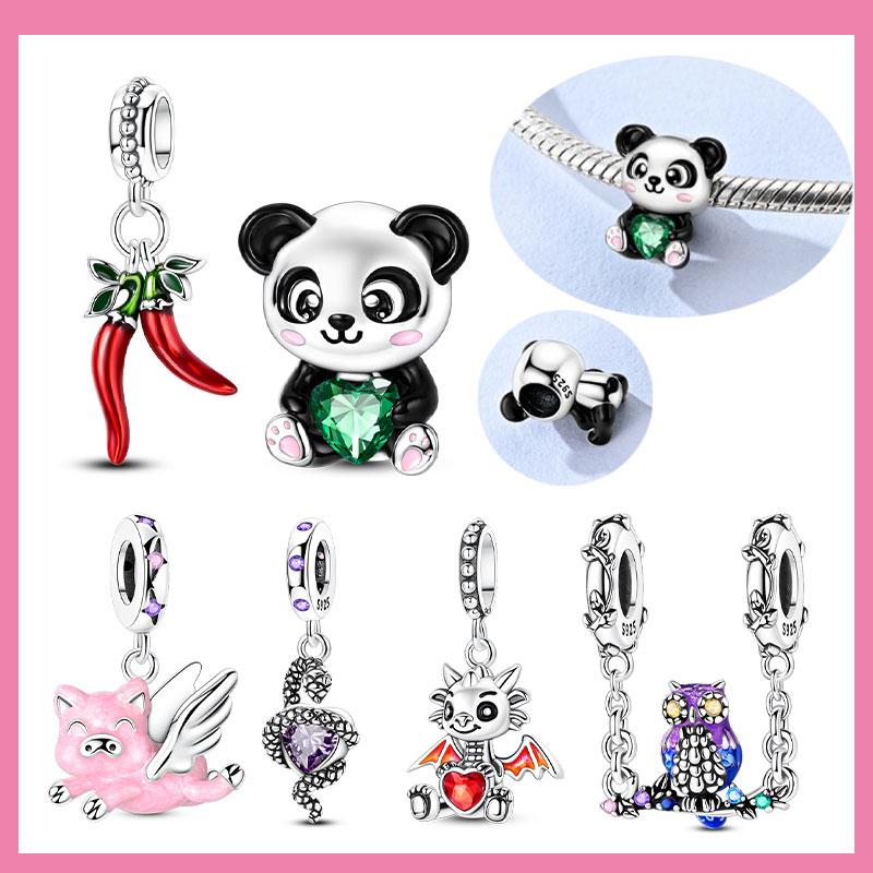 Charms Copper Red Dragon Treasure Heart Rose Panda Cat Pink Pig Beads Pendant Fit Original Bracelet Diy Jewelry