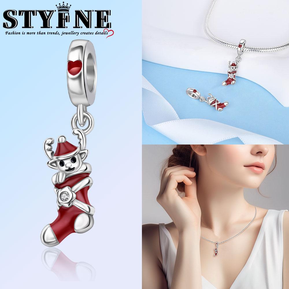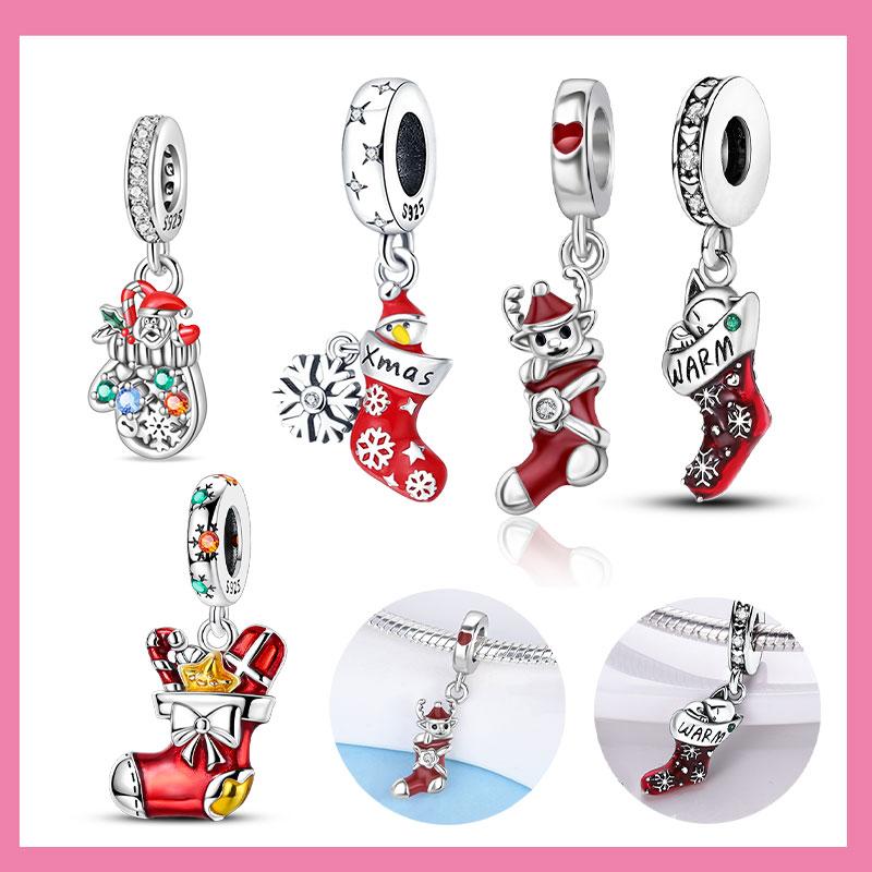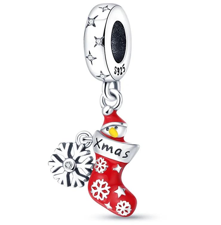 Медь Снежинка Рождественский Красный Снежинка Носки Перчатки Шармы Бусины Фирменный Браслет Изысканный Изготовление DIY Ювелирных Изделий Женский Подарок