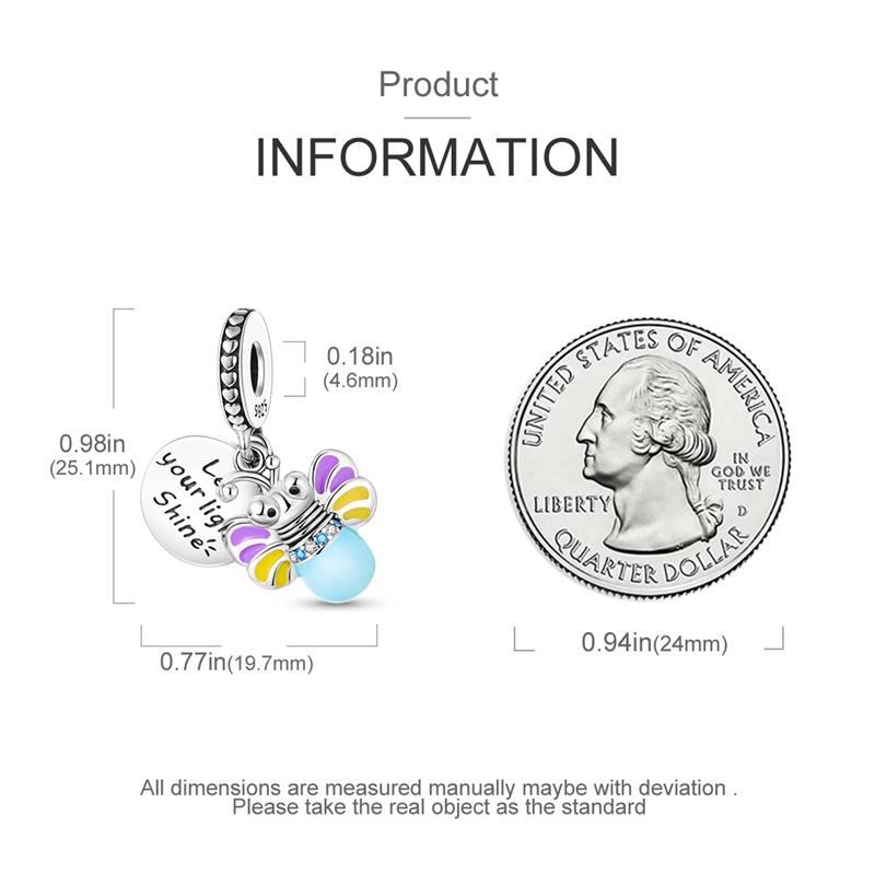 Charms Plata Glow-In-The-Dark Bulb Firefly Pendants Fit Original Bracelets Charms For Women Jewelry Diy Making Gifts