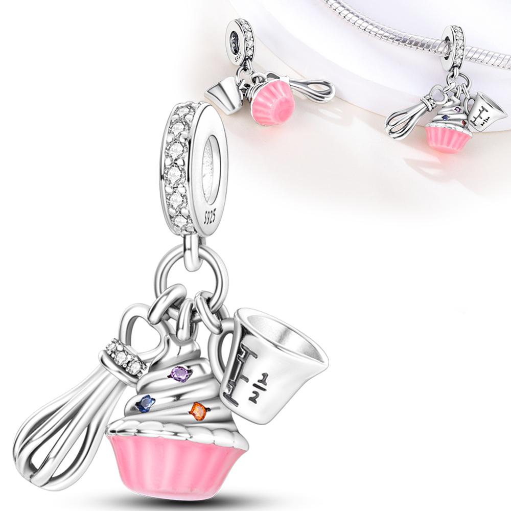 Розовый Торт Подвески для Выпечки Медь Оригинальные Бусины Подходят для Оригинальных Шармов Браслет Бусины Ювелирные Изделия Сделай Сам Подарки для Женщин