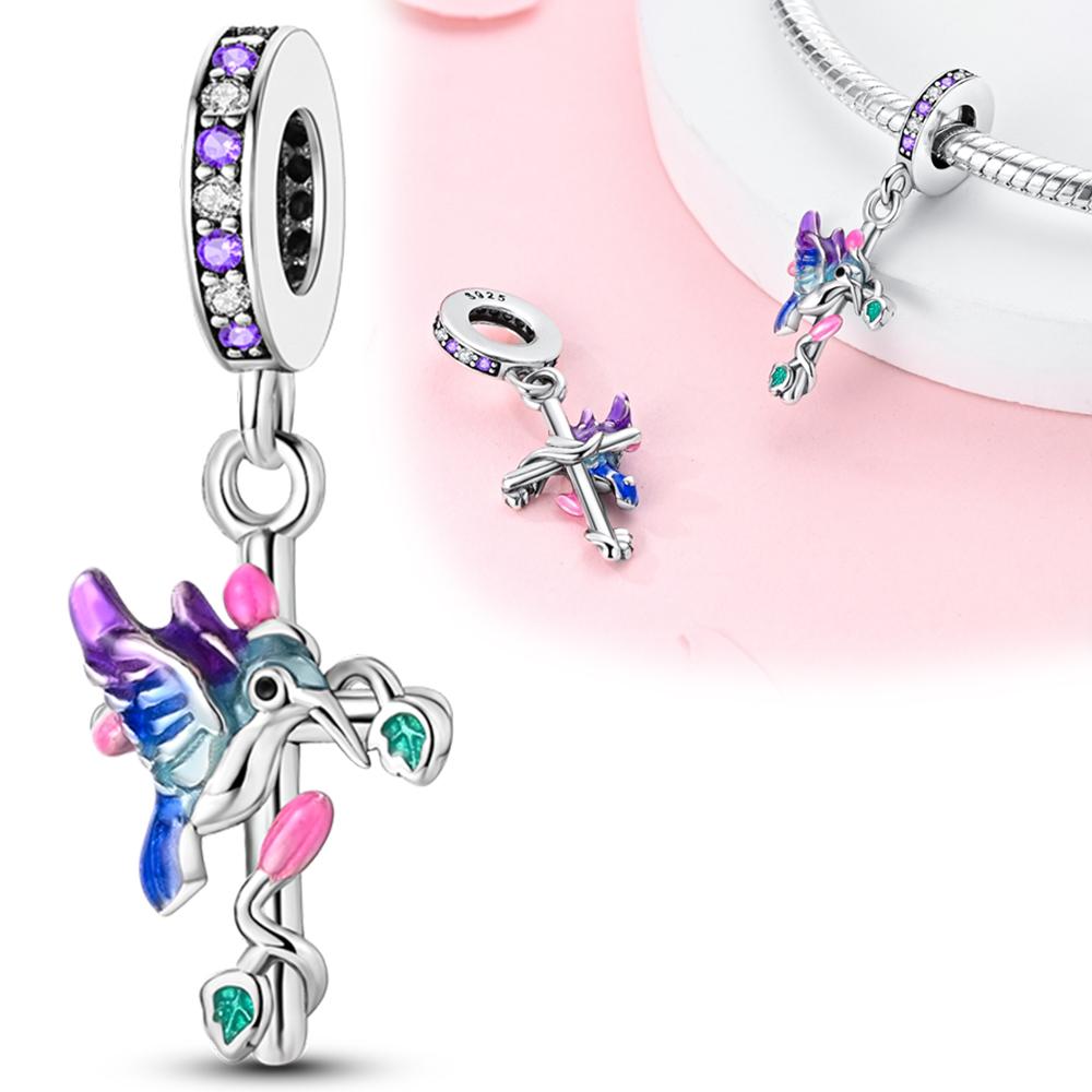 Шармы Серебро Сине-Фиолетовый Колибри Распятие Подвески Подходят для Оригинальных Браслетов Шармы для Женщин Ювелирные Изделия Сделай Сам Изготовление Подарки