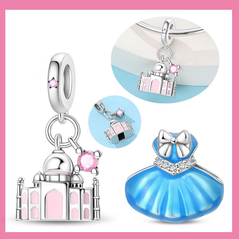 Медные Шармы Синее Платье Принцессы Флакон Духов Розовая Сумка Бусины Подвеска Подходят для Оригинального Браслета DIY Украшения для Женщин