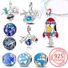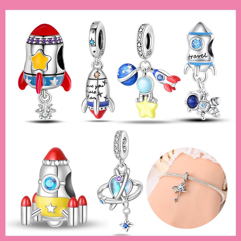 Copper Star Blue Glowing Heart Rocket Astronaut Beads Pendant Charm For Original Bracelet Woman Girl Jewelry