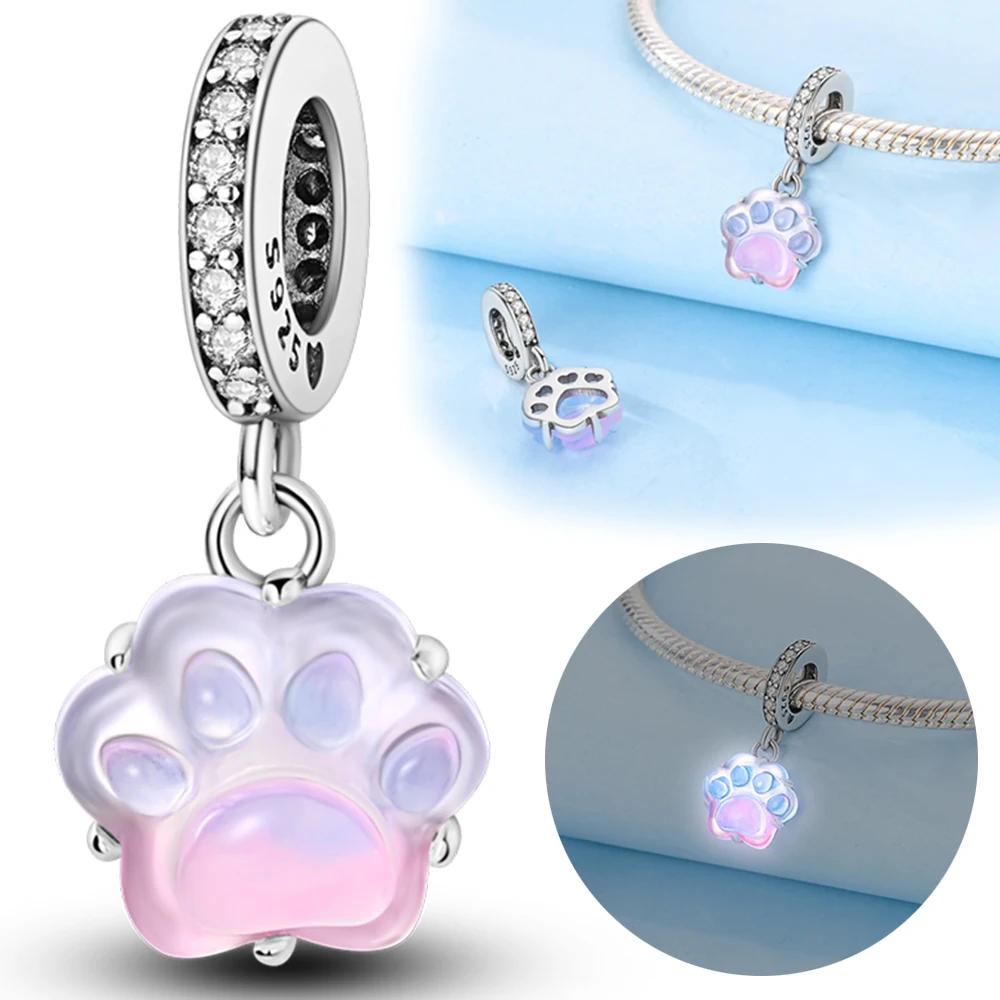 Медно-розовый Светящийся в темноте Кот Щенок Шарм Подвеска Бусины Лучшее Сочетание Оригинальный Браслет Для Женщин Изготовление Украшений