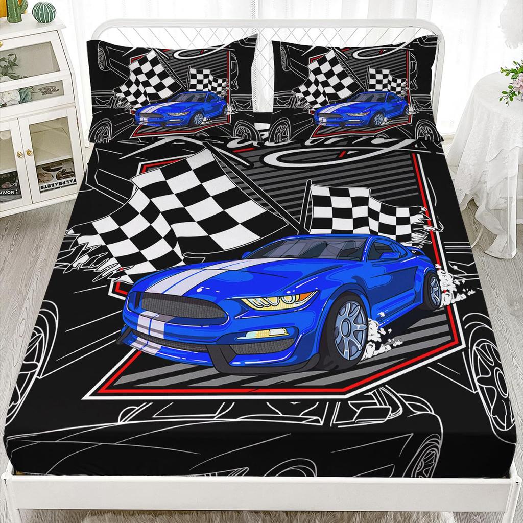 Разнообразный гоночный узор матрас трехкомпонентный цифровая печать комплект постельного белья для пары