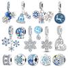 Оригинальные медные шармы-бусины Зимний синий циркон Сверкающий вращающийся кулон-снежинка Подходит для оригинального браслета, ожерелья