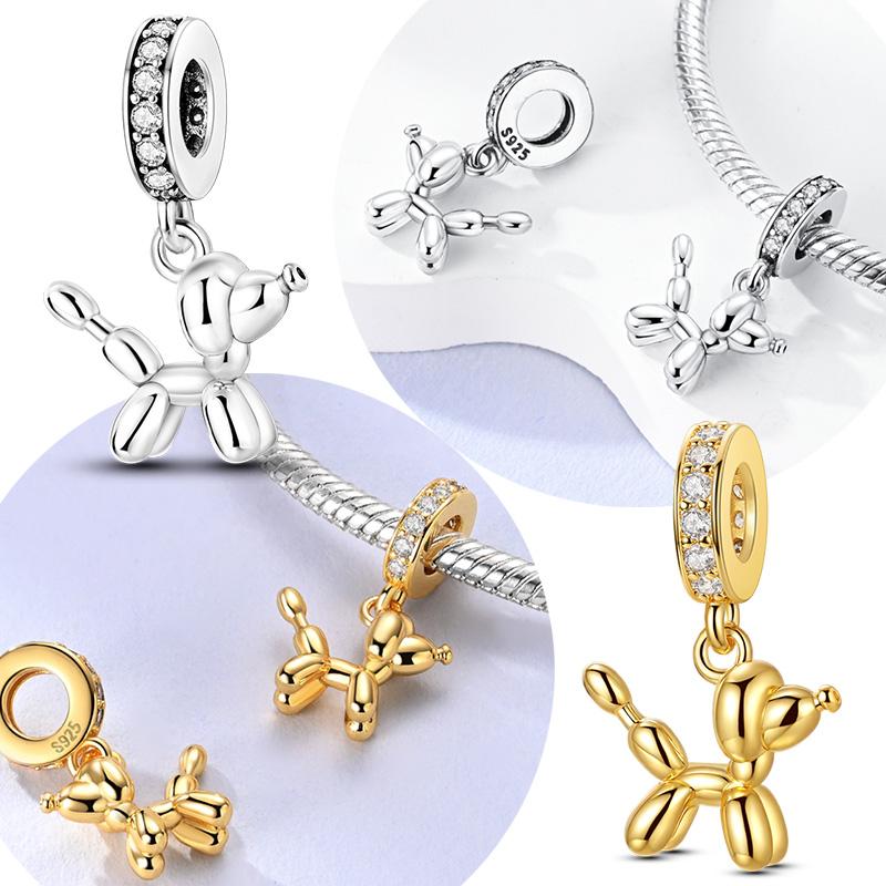 Оригинальный медный шарм-бусина золотистый пудель собака из воздушных шаров питомец подвеска подходит для оригинального браслета для женщин DIY ювелирный подарок