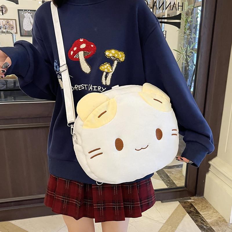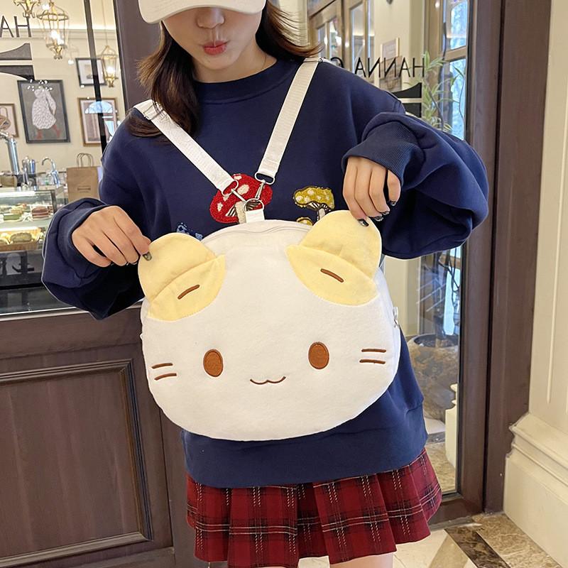 Мультяшный плюшевый рюкзак с кошкой для девочек и мальчиков, большой вместимости, для школы и повседневного использования