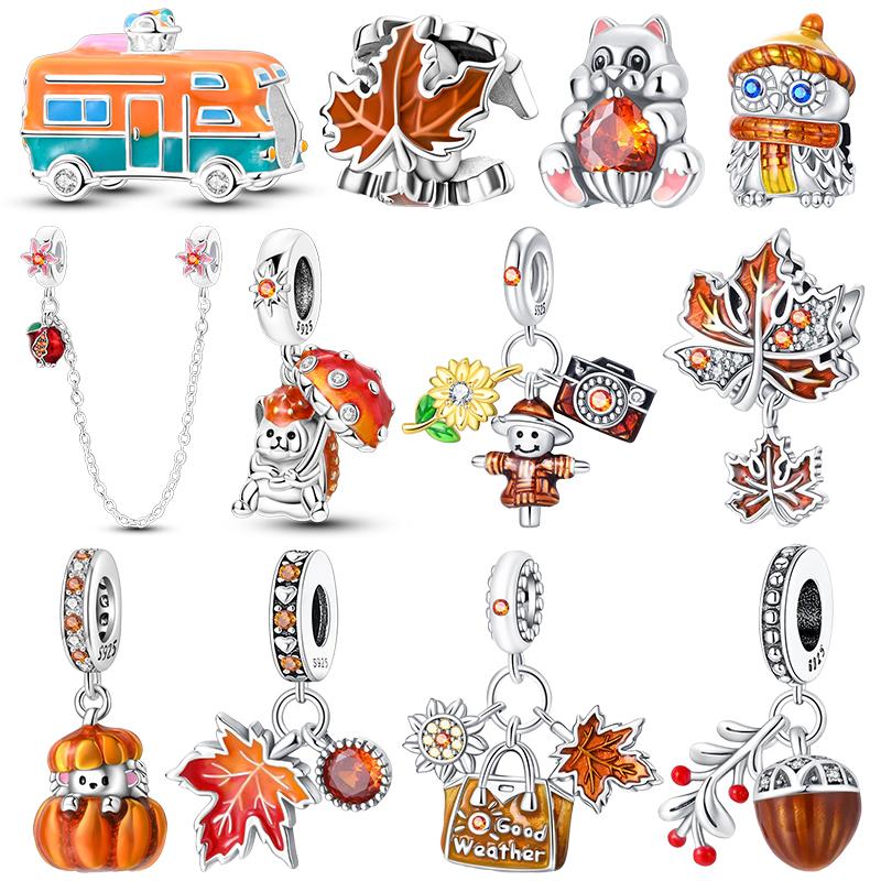 Медный кулон в виде кленового листа и ежовика, цветы, предохранительная цепочка, бусины, шармы, подходит для браслета с отверстием 4 мм, сделай сам, ювелирные изделия