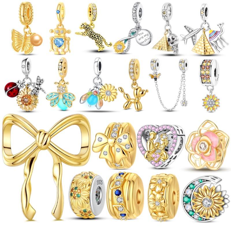 Оригинальные Медные Золотые Шармы Бусины Подсолнух Собаки Леопард Светлячок Подвески Подходят для Браслета Ювелирный Подарок Маркировка
