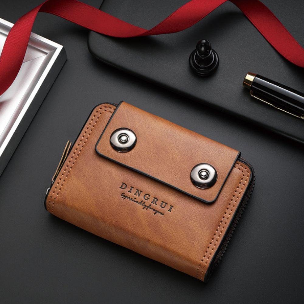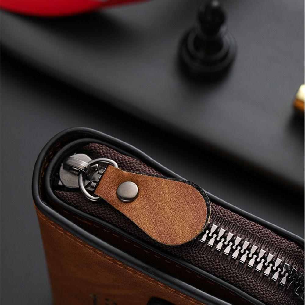 Кошелек-клатч мужской на молнии, однотонный, деловой, модный, тройного сложения, для путешествий