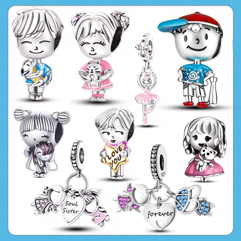 Copper Boy And Girl Sisters Couples Dangle Charms Fit Original Charm Bracelet Diy Beads Jewelry Making