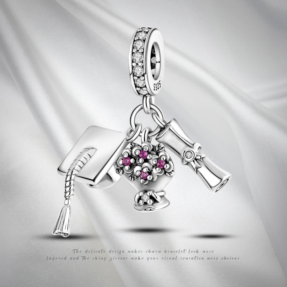 Fit Original Copper Charms Beads Flowers Bachelor'S Cap Degree Certificate Charms Fine Diy Jewelry Graduation Gifts