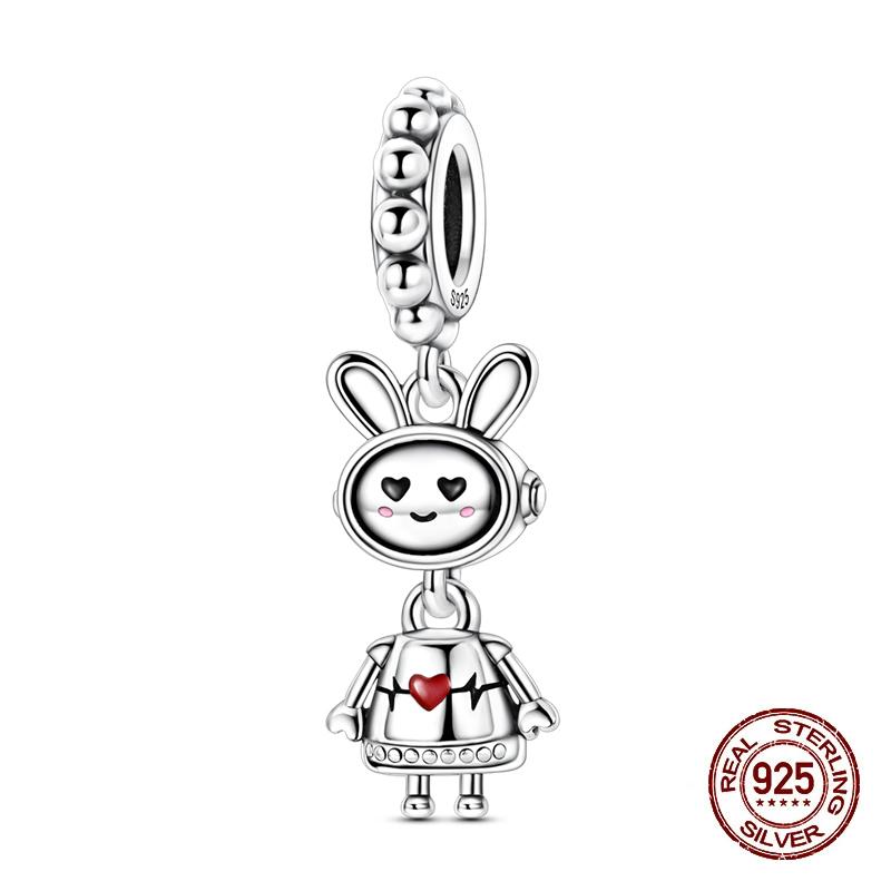 New Copper Charm Beads Expression Changes Robot Rabbit Beads For Bracelet Pendant Diy Fine Women Girls Jewelry Gift