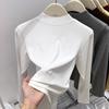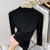 Женская облегающая футболка с полувысоким воротником, весенний простой универсальный топ, базовая футболка с длинным рукавом