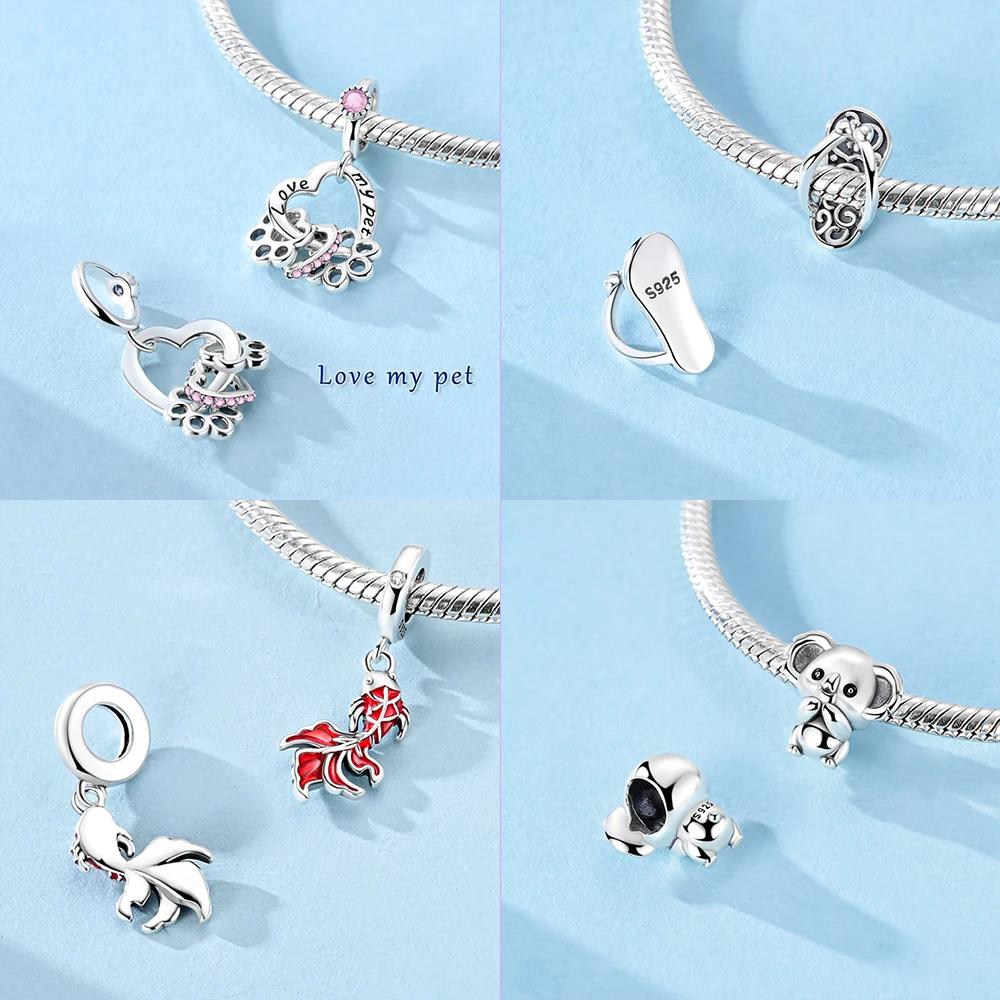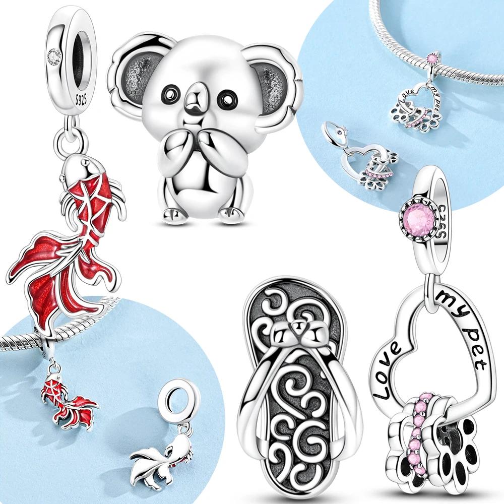 Шармы Медь Оригинал Коала Карп Сердце Лапки Бусины Подходят для Браслета Женские Украшения Сделай Сам Юбилей Прекрасный Подарок Аксессуар