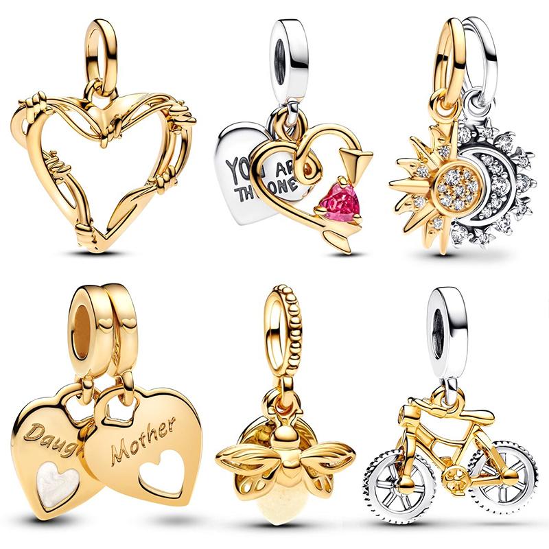 Новые Шармы-подвески в форме сердца из розового золота Подходят для браслета, браслета-манжеты, ожерелья Женские Роскошные DIY Ювелирные изделия Вечеринка Фестиваль Подарок