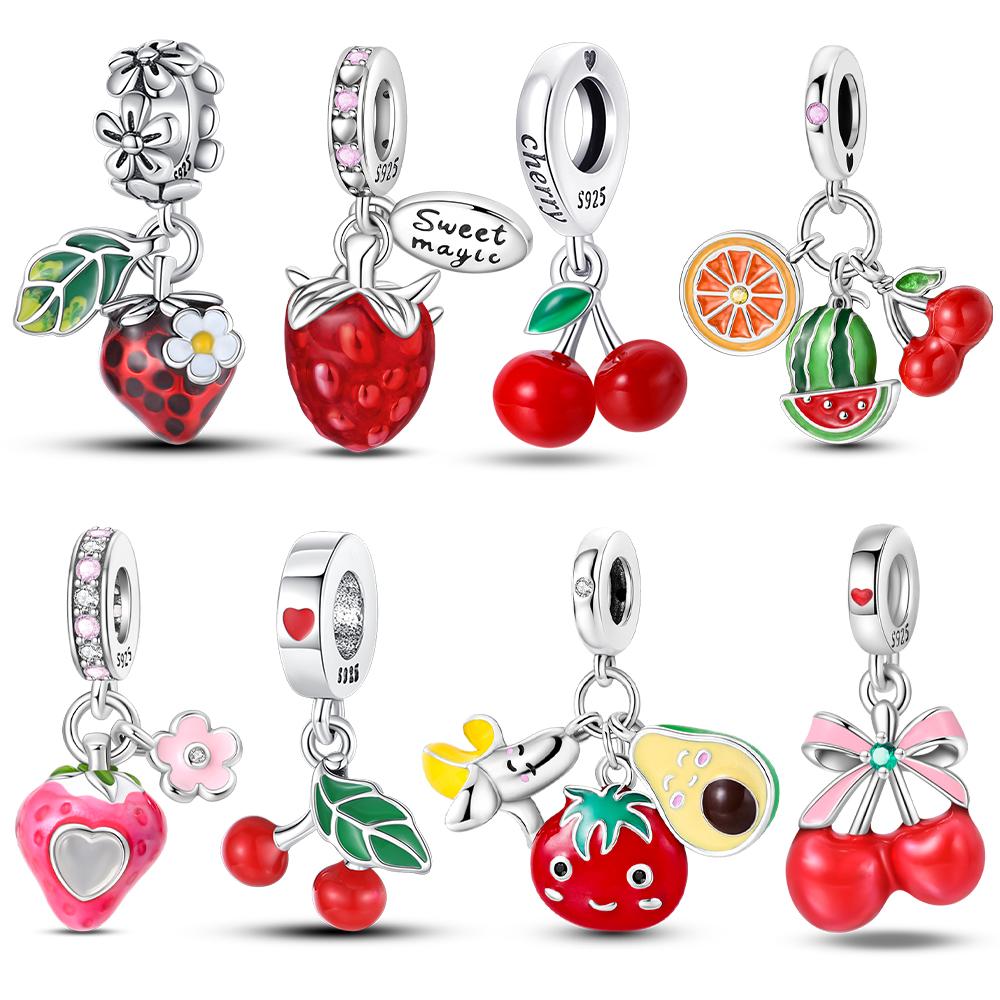 Изысканные оригинальные медные шармы-подвески в виде клубники, вишни, яблока, авокадо, фруктов, бусина, подходят для браслетов DIY, ювелирные изделия на день рождения, изысканный подарок