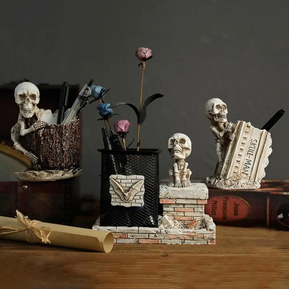 Resin Crafts Halloween Skull Pen Holder Funny Skeleton Toothbrush Holder Home Desktop Decoration