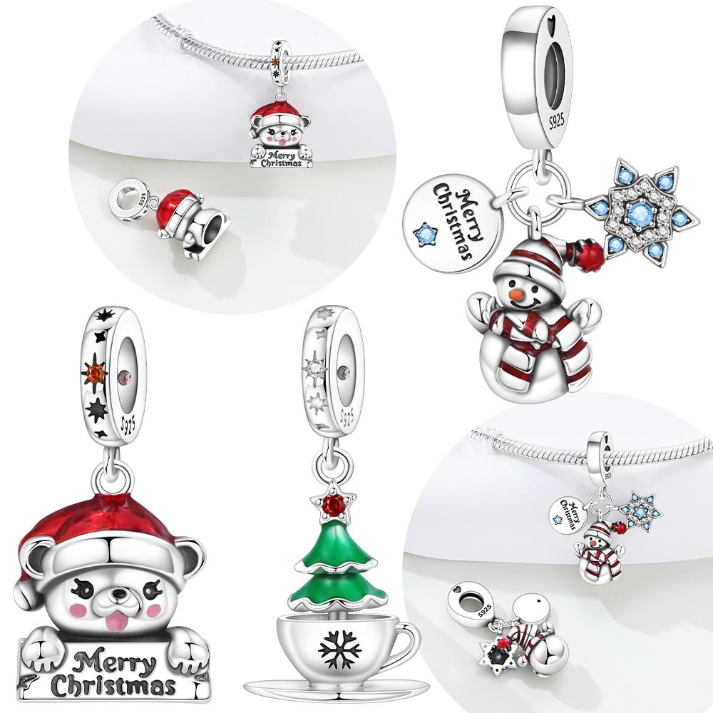 Red Hat Снеговик Зеленая Рождественская елка Чашка Подвеска-снежинка Бусины Подходят для браслета Оригинальный медный аксессуар Подарок на годовщину