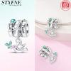 Exquisite Original Charms Copper Green Zircon Flower Bird Heart Wings Beads Fit Bracelet Women Jewelry Diy Gifts