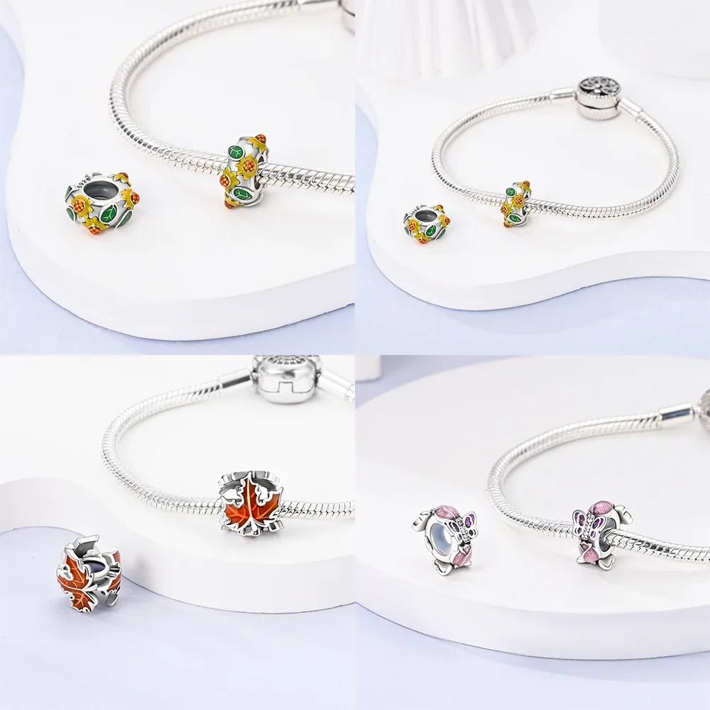 Exquisite Pendants Woman New Original Copper Pink Butterfly Bear Sunflower Bead Fit Bracelet Accessory Jewelry Diy Gift