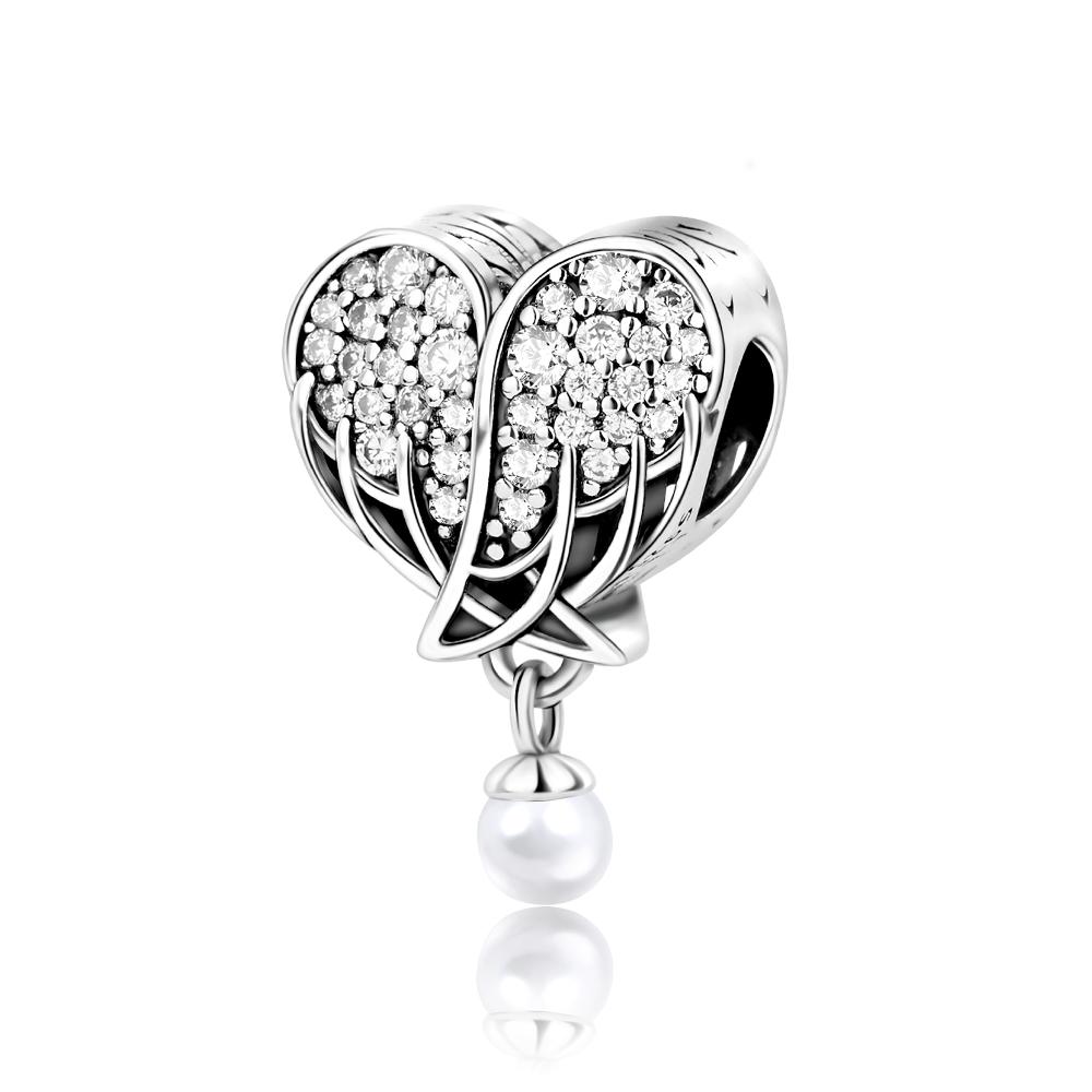Подвеска Шар-подвеска Медный Ангельское Крыло Сердце Бусины Подходят для Оригинального Браслета Для Изготовления Украшений Подарок на День Святого Валентина
