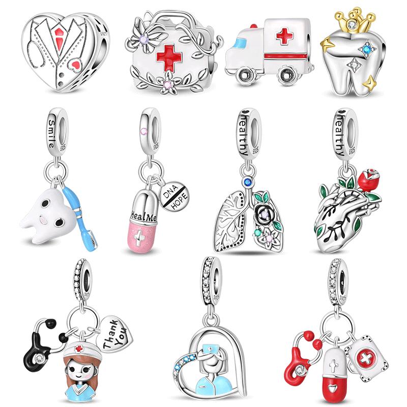 Copper Physical Health Nurse Medicine Box Stethoscope Charms Medicine Beads Fit Original Bracelets Diy Jewelry