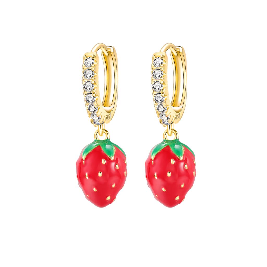 Медные серьги Женские Девушка Милые Циркон Фруктовая серия Вишня Клубника Яблоко Виноград Серьги Юбилейные украшения Подарок
