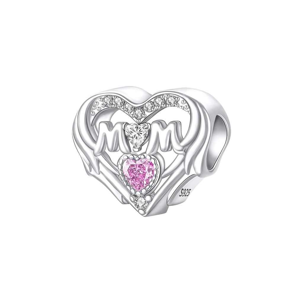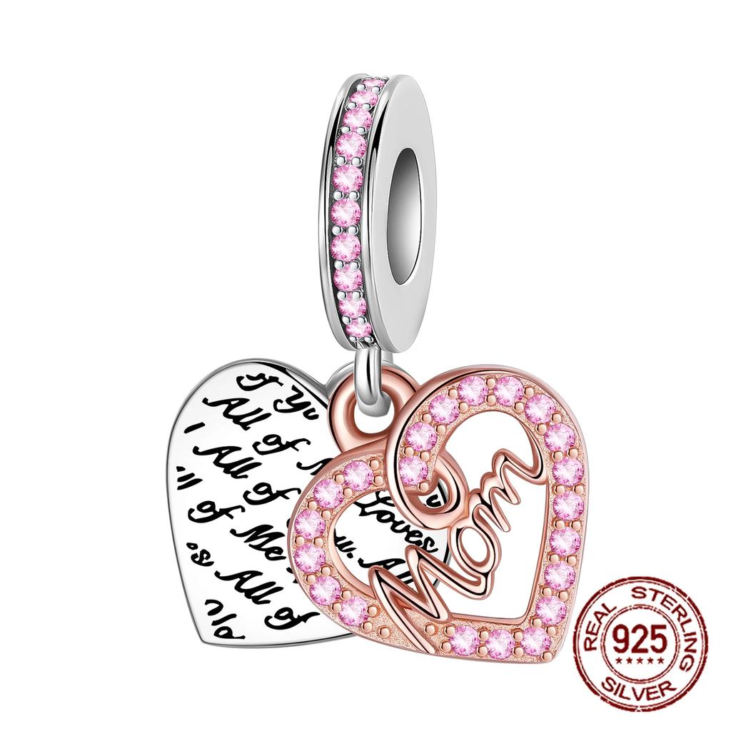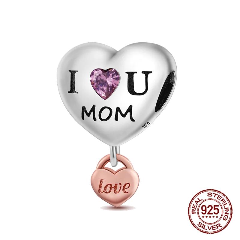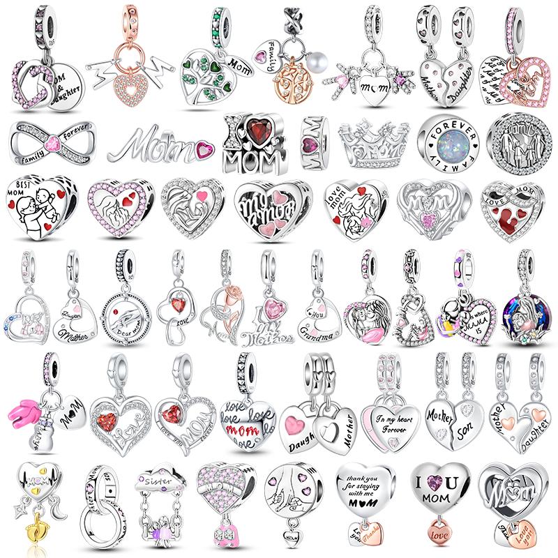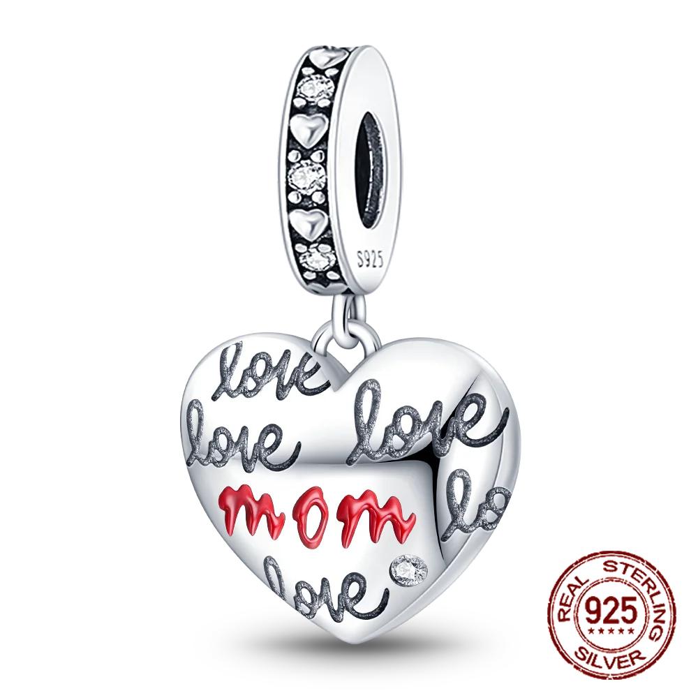 Copper Heart Shaped Warm Family Mom Charm Beads Fit Original Bracelets Fine Diy Mother'S Day Jewelry Gifts