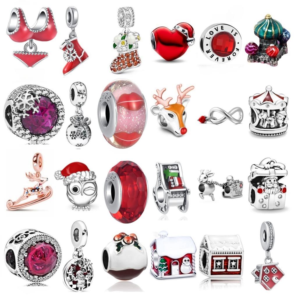 Медь Рождественская Серия Бусина Санта Клаус Подарок Лось Шармы Подходят Женские Украшения Фестиваль День Рождения Сделай Сам Браслет
