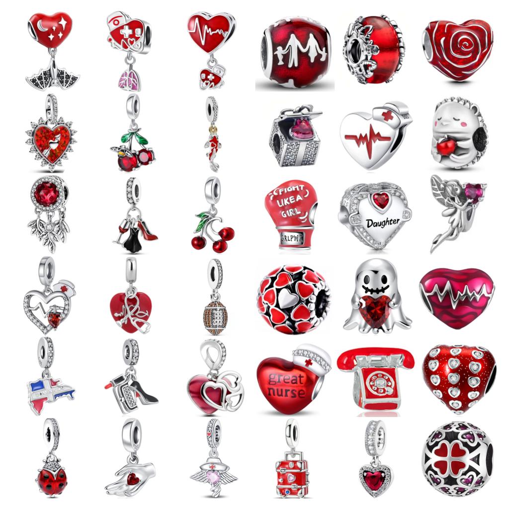 Новые медные красные шармы бусина-сердце для медицинского персонала подходят для оригинального браслета-шарма для женщин DIY изготовление модной бижутерии вишня