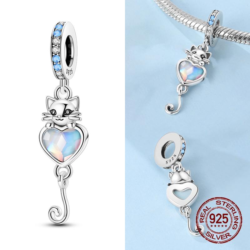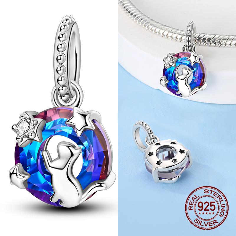 Copper Charms Cute Black Cat Shiny Star Moon Beads Pendants For Original Bracelet Fine Jewelry For Women Gifts Diy