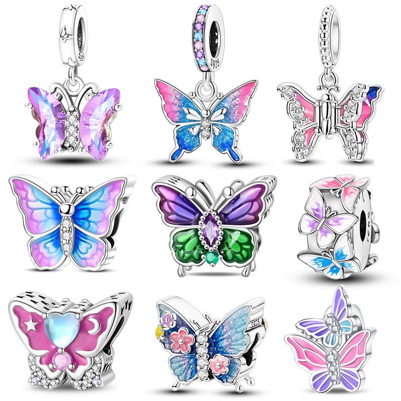 Springtime Copper Sparkling Zircon Colorful Butterfly Charms Beads Fit Pendants Bracelets Diy Birthday Jewelry Gift
