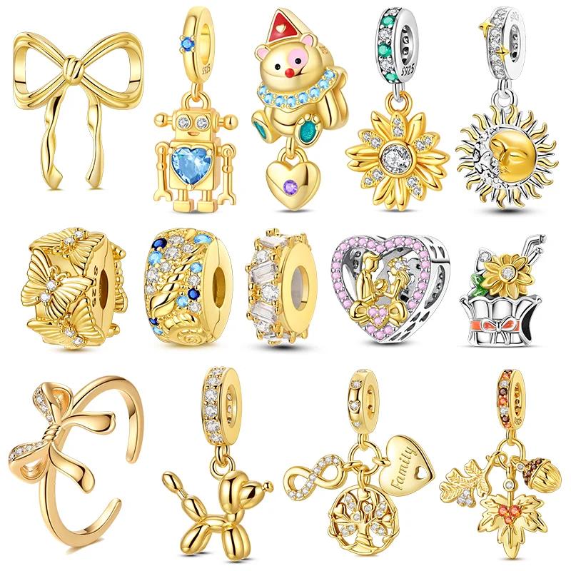 Медный Позолоченный Шарм Дерево Жизни Браслет-бант Серия Шармы Бусины Подходят для Оригинальных Браслетов Маркировка DIY Ювелирные Изделия