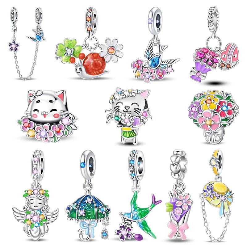 Copper Bouquet Of Flowers Cat Swallow Snail Butterfly Pendant Charms Beads Fit Bracelet Diy Birthday Jewelry Gift — купить товар онлайн с бесплатной доставкой по всему миру!