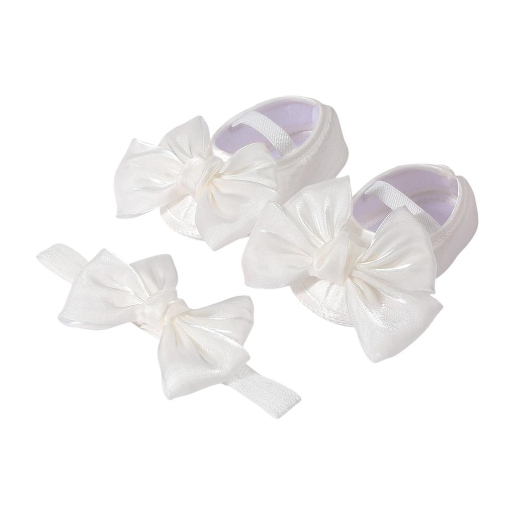 Детская обувь для обучения ходьбе с мягкой подошвой, бантиком, клеем, не сетчатая, однотонная обувь + повязка на голову