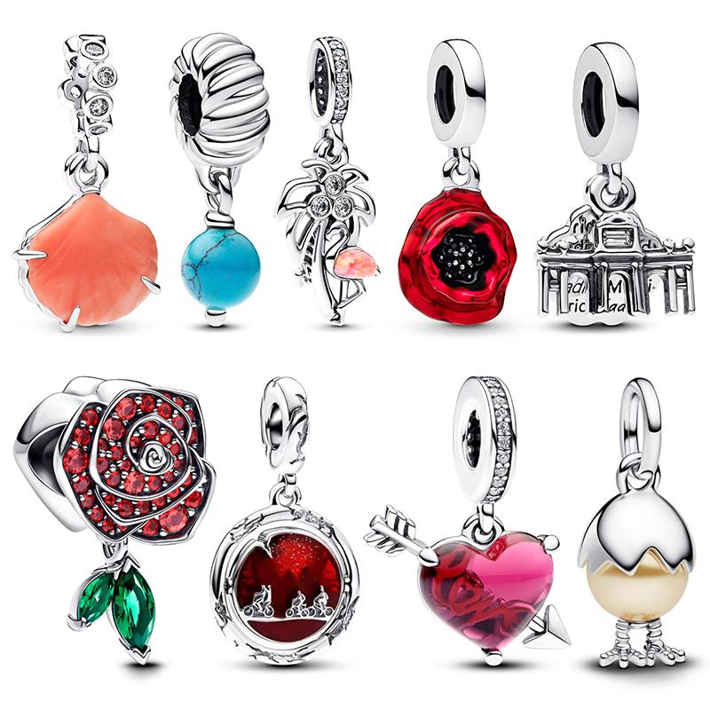 Новый Шарм-подвеска в виде цветка красной розы подходит для оригинального браслета, браслета-манжеты, ожерелья, женские роскошные DIY украшения, подарок на вечеринку, фестиваль