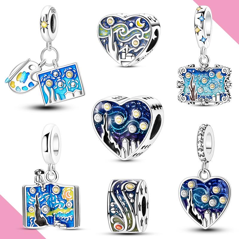 Van Gogh'S Starry Night Charms Copper Blue Beads Fit Original Bracelet Diy For Woman Jewelry