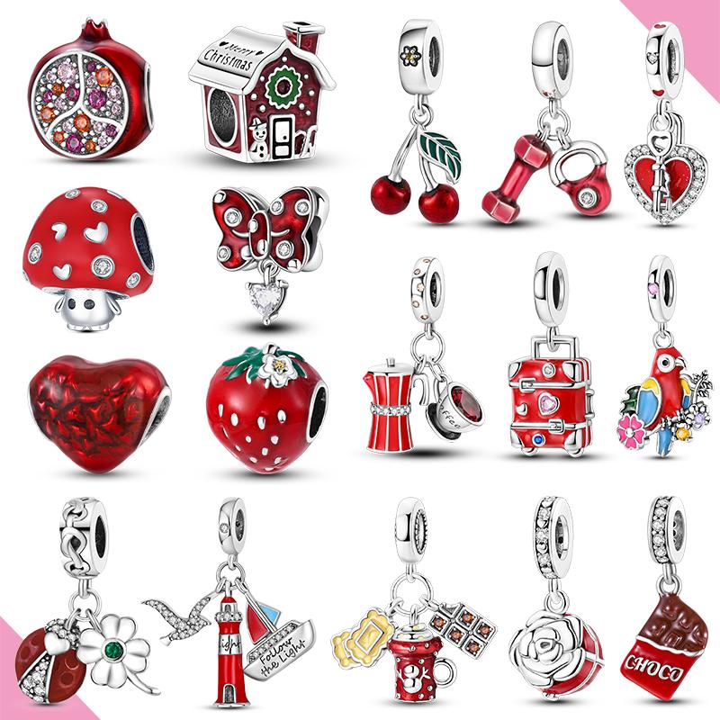 Медный подвесной шарм из красной серии Клубничное сердце Кофе Подходит для оригинального браслета Подарки Женские украшения — купить товар онлайн с бесплатной доставкой по всему миру!