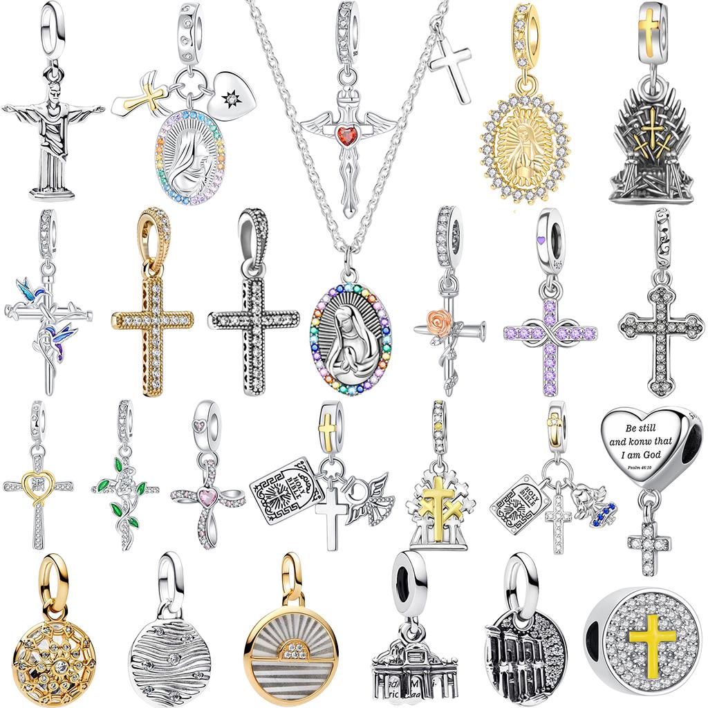 Новые крестики-шармы Подвеска-ангел Дева Мария Бусины Ожерелье Подходят для оригинальных медных браслетов Изысканные ювелирные изделия Подарок своими руками