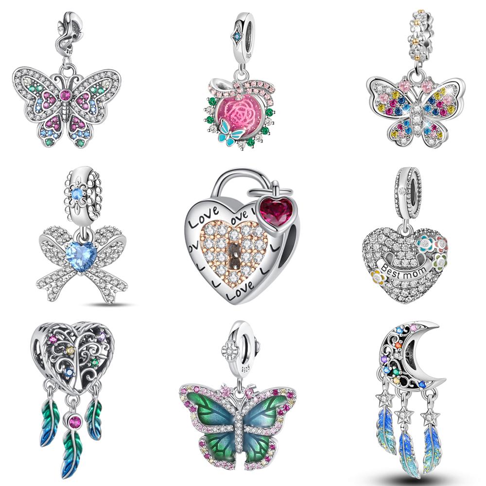 Красочные Медные Блестящие Бусины-Сердечки и Сверкающие Бантики Подвеска Шарм Подходит для Браслета Ожерелья Женские Изысканные Подарки