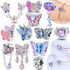 Медные бусины в форме сердца с инкрустацией и подвеска-шарм в виде бабочки, подходят для браслета-змейки, бутикового ожерелья, фиолетовая подвеска, подарок